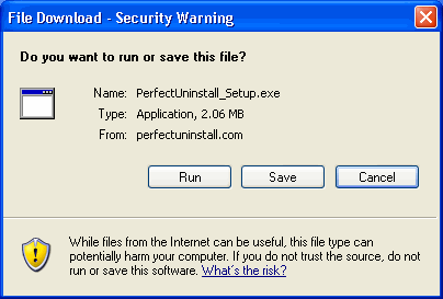 In a few seconds you will see an alert box like the one in the figure below. Select "Run" to download and install Perfect Uninstaller.